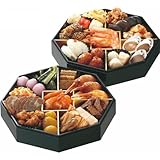 京菜味のむら 京風おせち「朱雀」 価格: 31,500円 レビュー評価: レビュー数: ●[賞味期限:冷凍保存2010年1月31日/解凍後冷蔵保存2日間]※解凍方法:冷蔵庫/約17時間★<一の重>15品目:寿高野豆腐、六角里芋煮、手綱こんにゃく、蓮根煮〆、ごぼう煮〆、椎茸旨煮、京人参ねじり梅、松麩、笹麩饅頭、天然海老姿煮、鮭鳴門昆布巻、たこ煮、小鯛の笹漬、田作り、花餅<ニの重>13品目:紅蒲鉾、白蒲鉾、湯葉巻にしん、伊達巻、彩り胡麻寄せ、いくら、あい鴨山椒焼き、栗甘露煮、渋皮栗甘露煮、紅白結び麩、貝柱祐庵焼き、梅羊羹松葉串、味付け数の子<三の重>11品目:胡麻甘藷、海老手綱、花百合根、鱈旨煮、牛肉八幡巻、あわび旨煮、柚子饅頭、葉付金柑甘煮、金時人参入り生酢、豚角煮、梅甘露煮<四の |